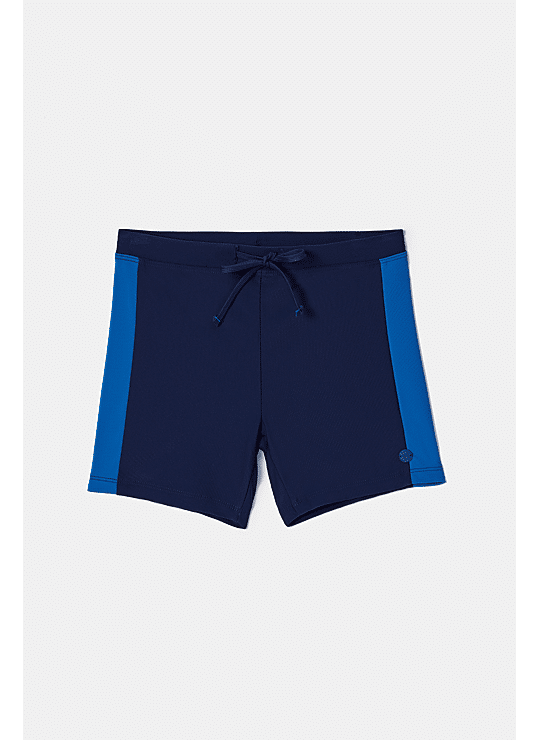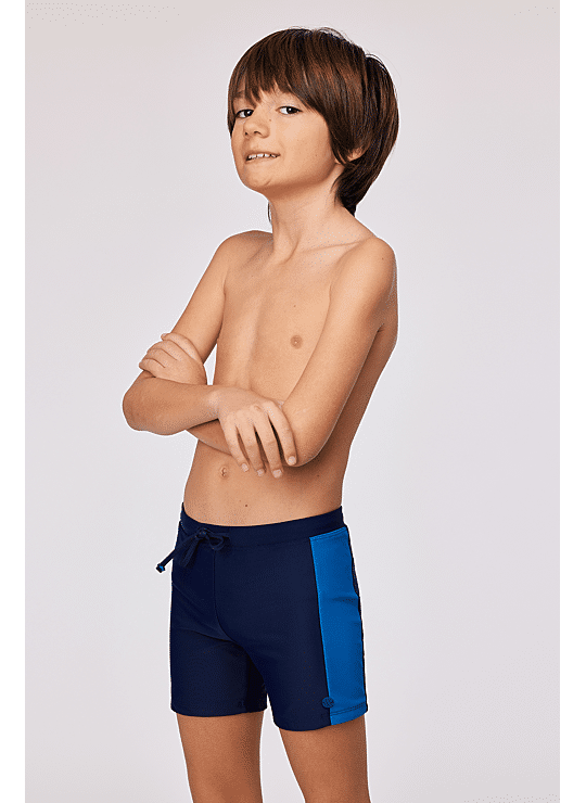Donkerblauwe aansluitende zwembroek van rekbare zwemstof. Geschikt voor zwemlessen met school of recreatief zwemmen.