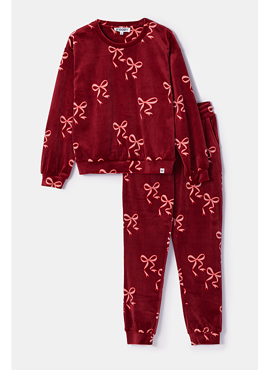 Woody Meisjes Pyjama Bordeaux Strikkenprint